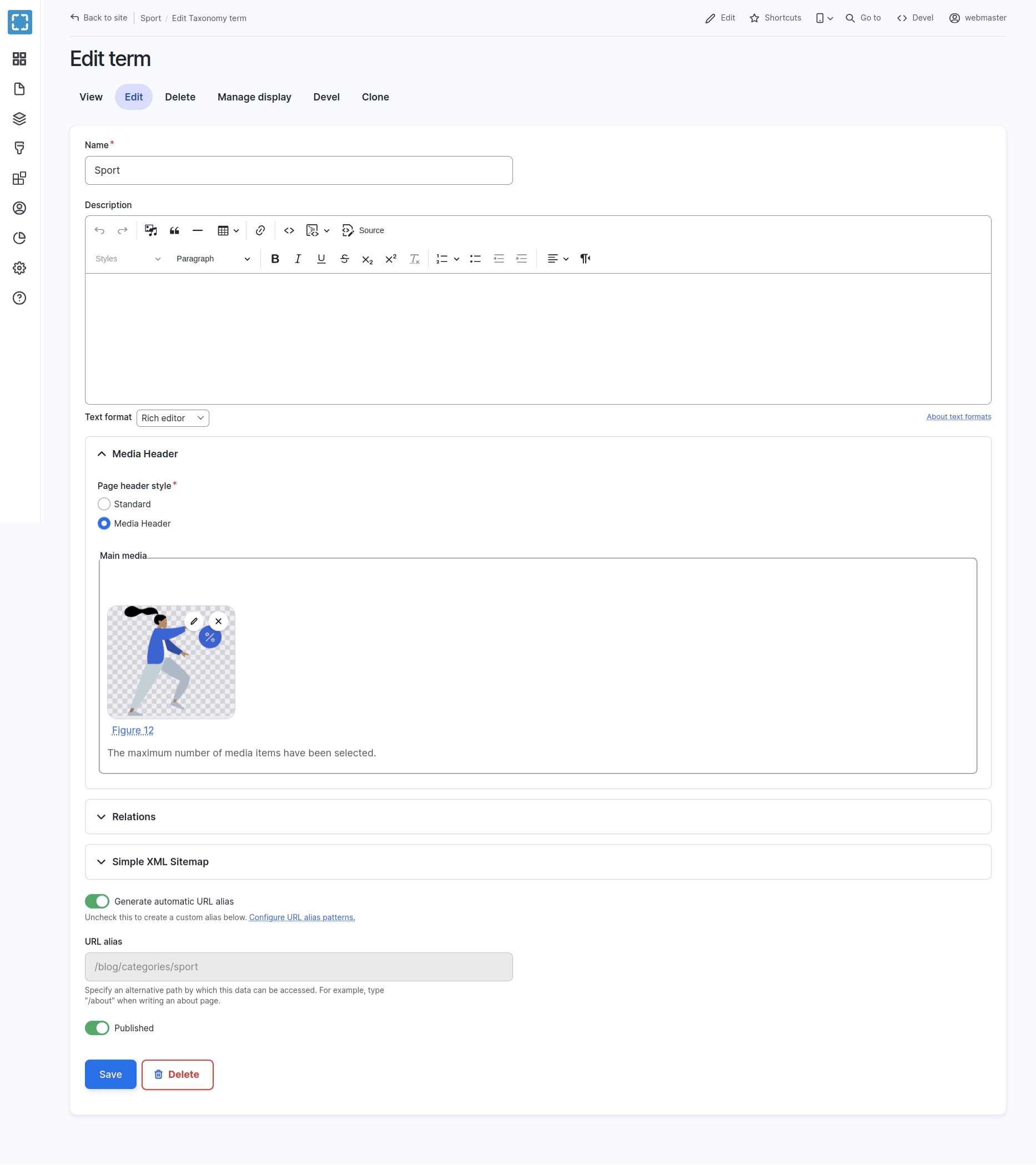 for each activated content type. Or other media field which are selected to work as the background image for the media header.Choose