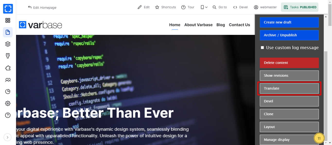 3. In backend once you're on the node editing page locate the "**Translate**" tab on the editing form click on the "**Translate**" tab to access the translation options.