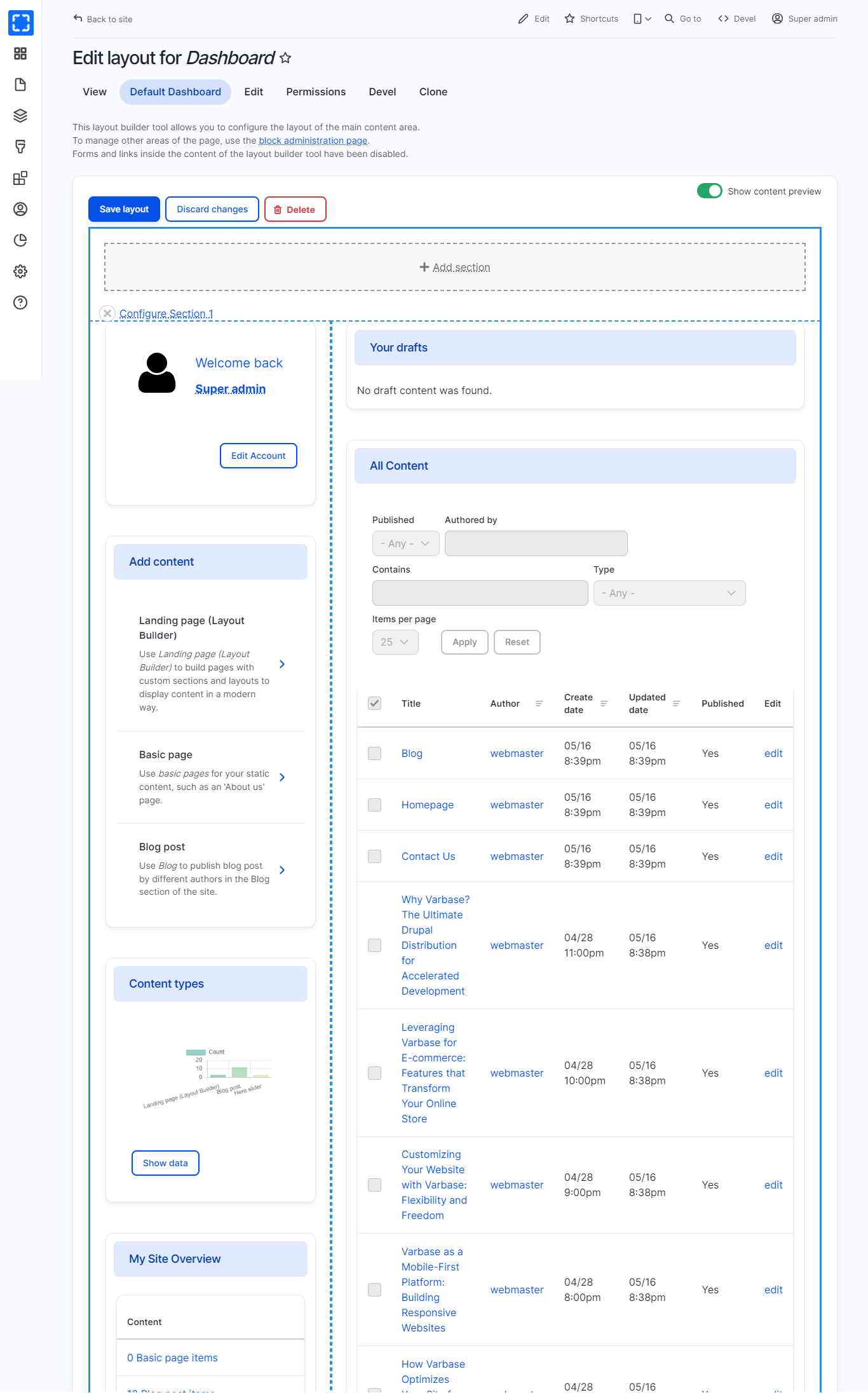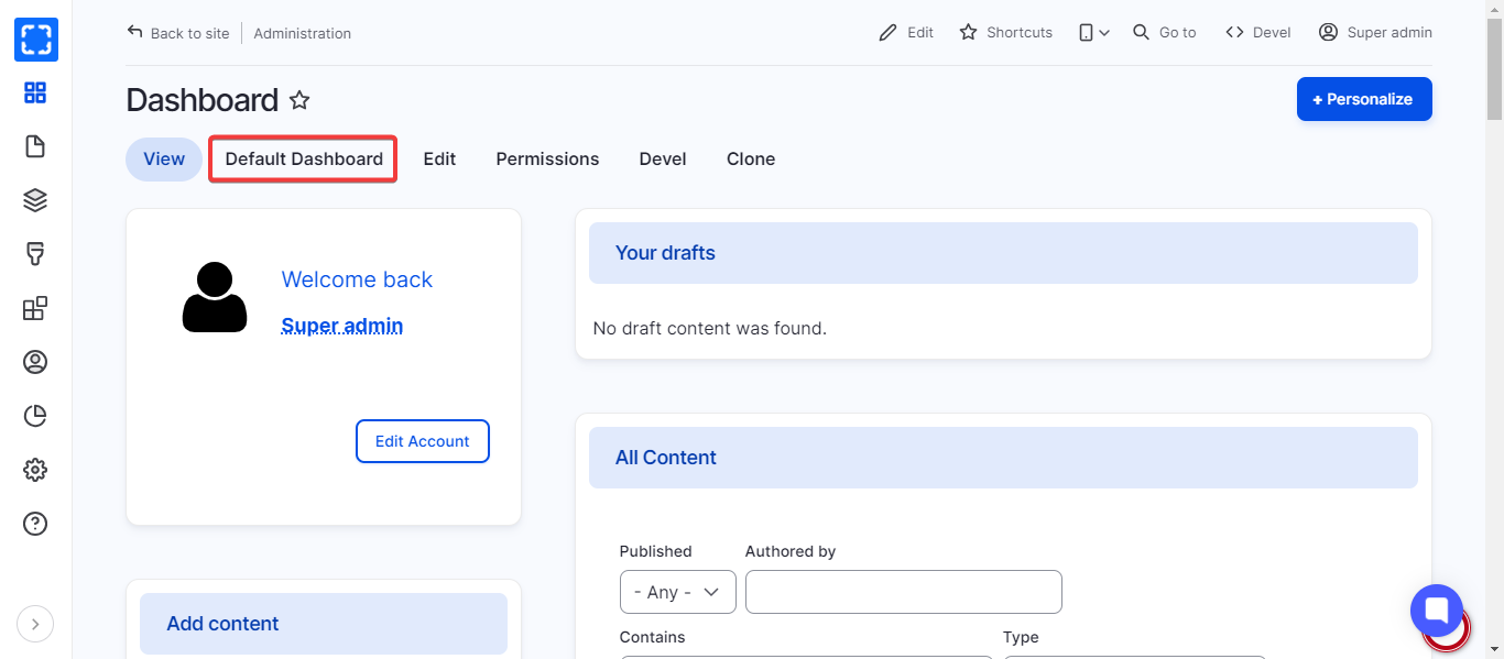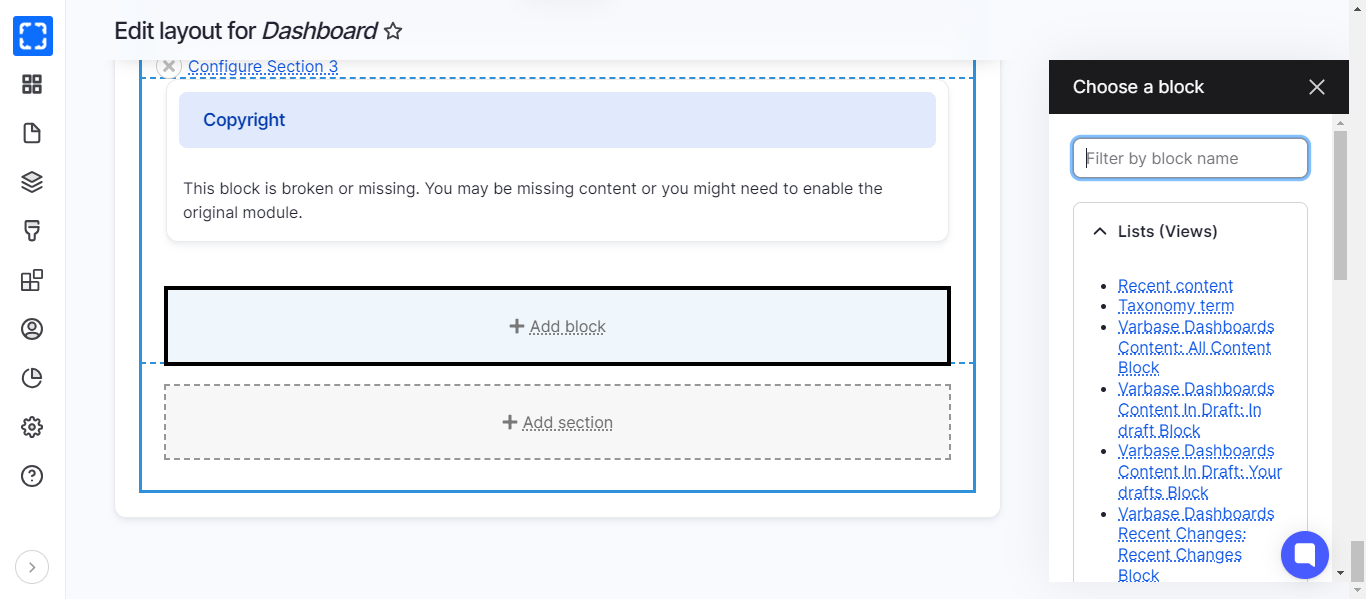 * Reorder the default blocks under **the dashboard.**&#x20;
