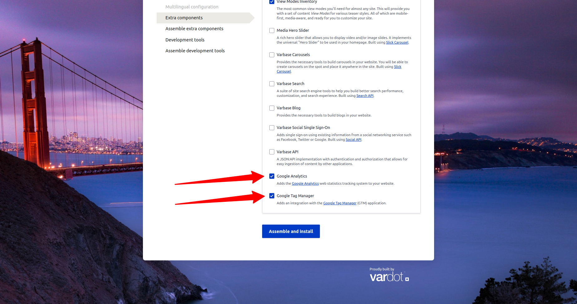 When you install Varbase, Google Analytics and/or Google Tag Manager modules can be optionally installed.