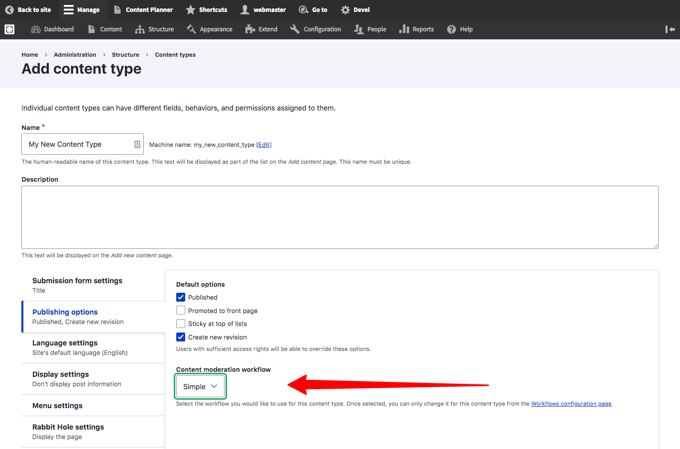 Assign a Workflow When Creating a New Content Type