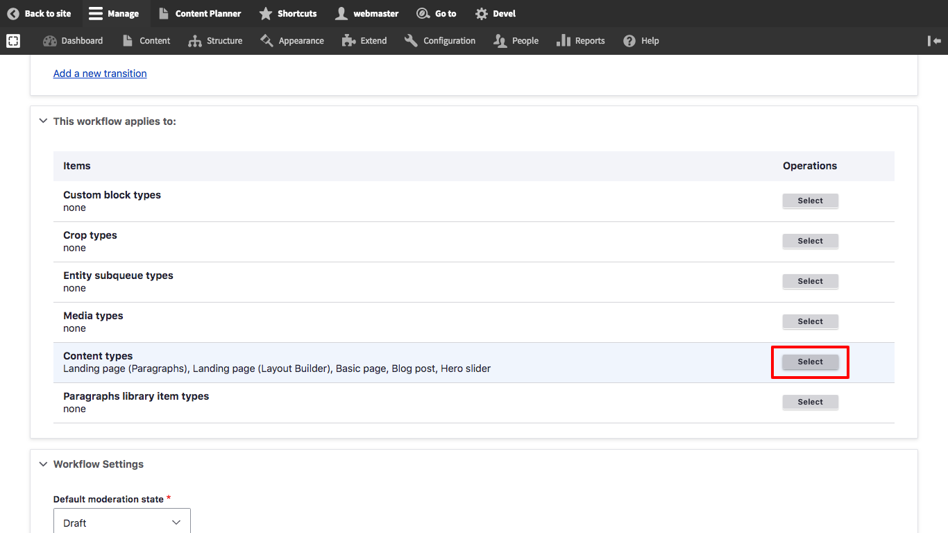 Assigning a Workflow to Content Types