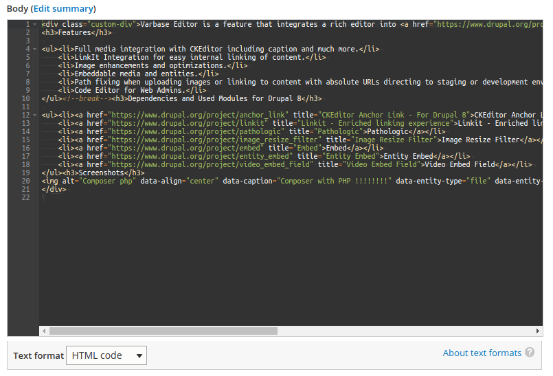 |-- varbase_editorBrings in the following core and contributed modules to your site: