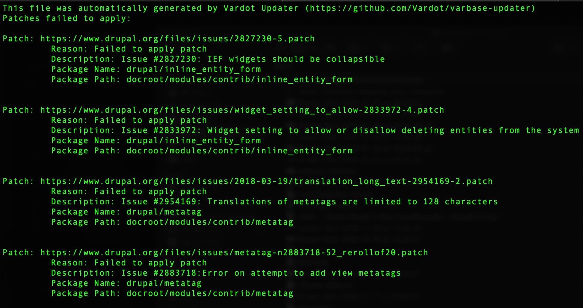 Example screenshot of varbase_failed_patches.log below: