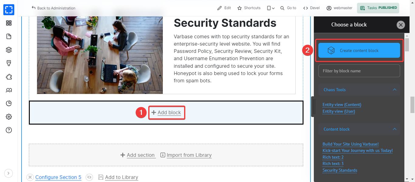 4. Click on **Add Block \&#x20;*****Create Content Block***.
