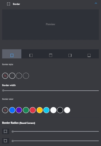 Users can control the borders (full/specific edge) by choosing the border style, width, color, and radius.