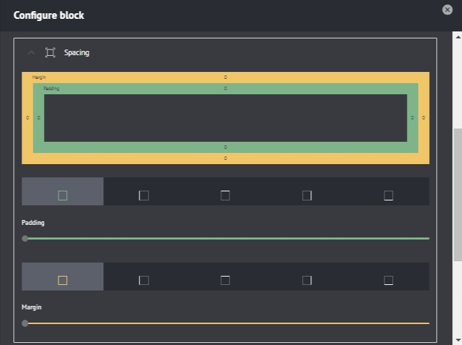 Users can control the block padding (inner space of the block) and margin (whitespace available surrounding the block)