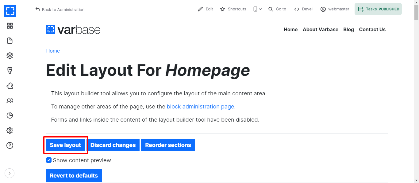 5. Click **Save Layout** at the top of the page when you are done with your changes.