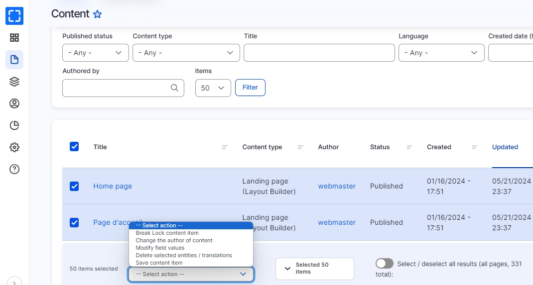 Be careful when you select multiple pages and want to delete them this action cannot be undone.