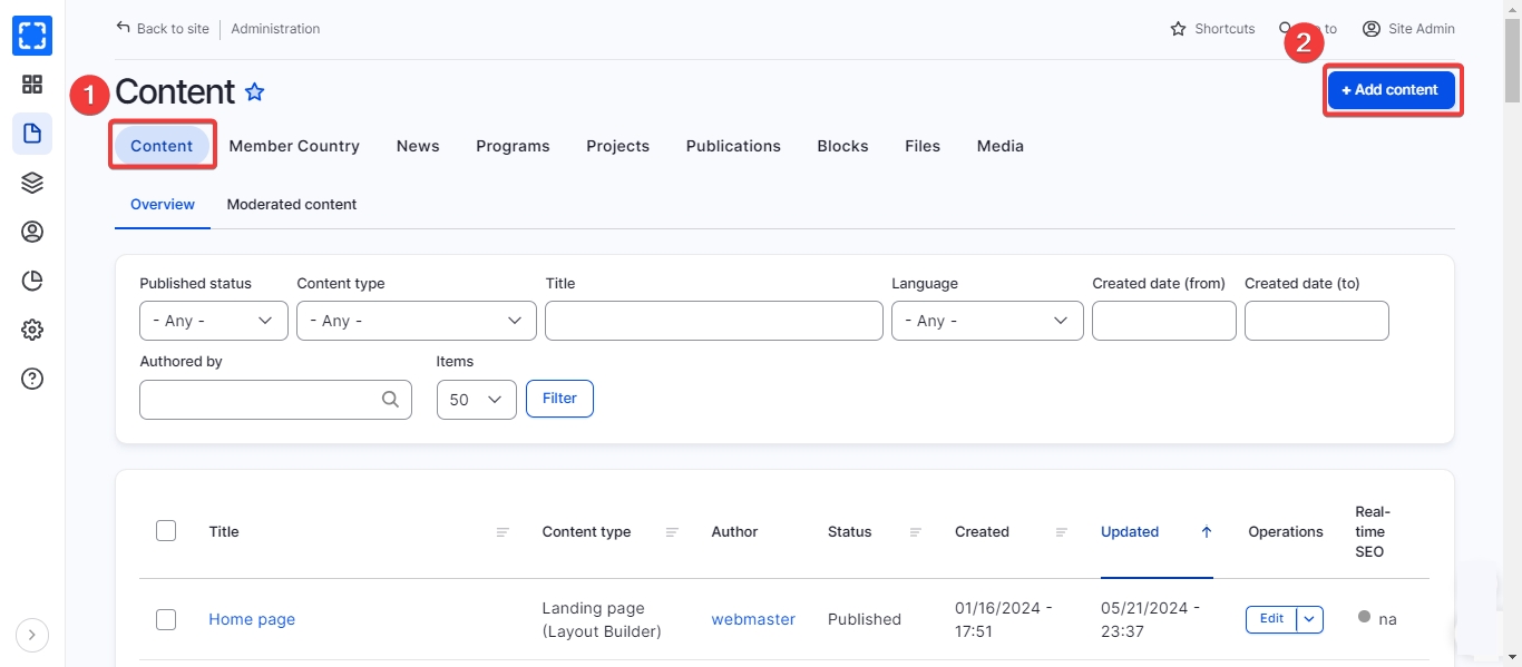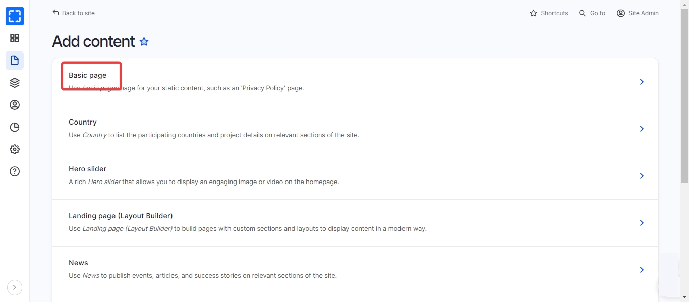 A guide to creating content via the preconfigured content types, and any custom content types your system administrator creates.