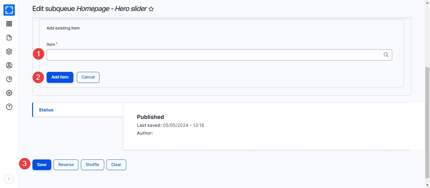 Select the EntityQueue list that you want to add a term to (eg. Media Hero Slider).