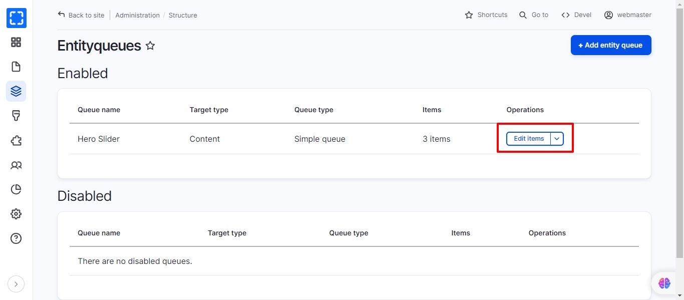 Go to Structure/EntityQueues page.