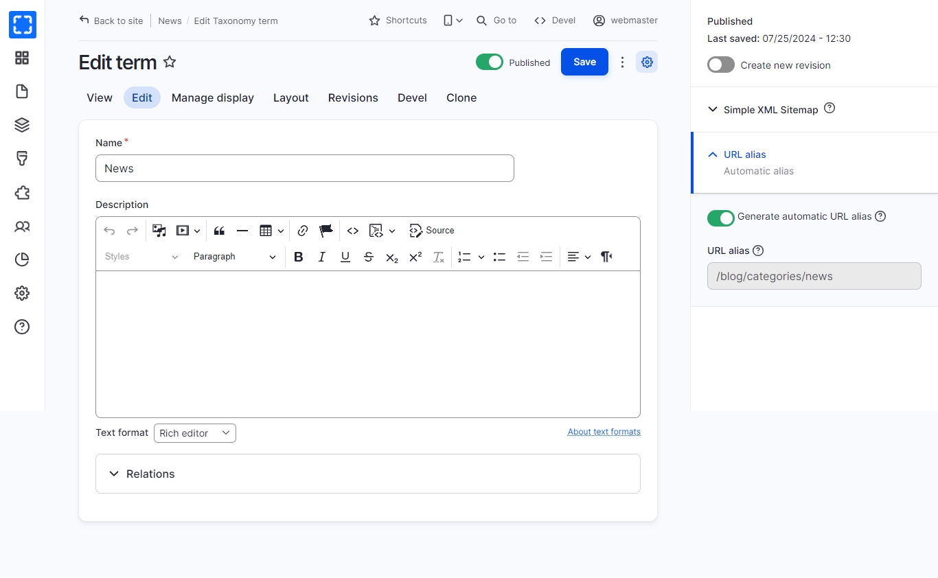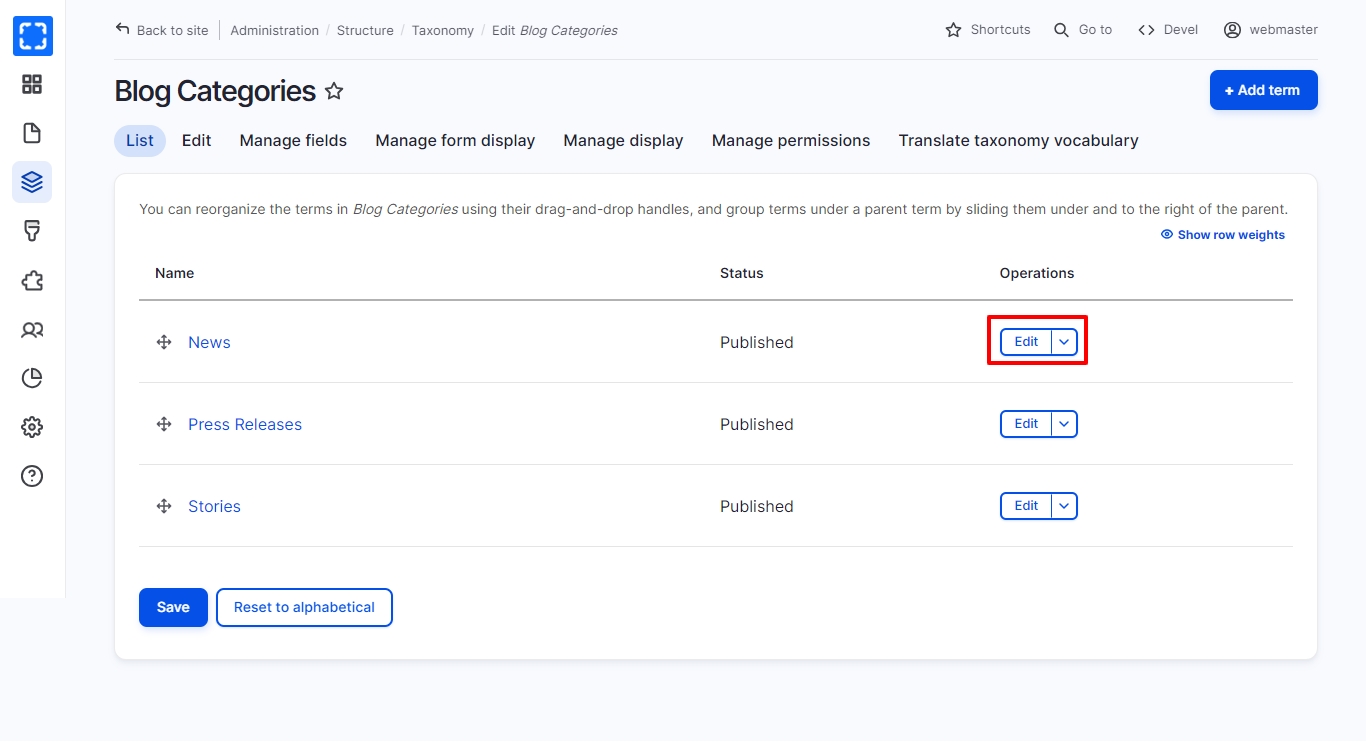 Choose the taxonomy that you want to edit it terms, Click on List terms.