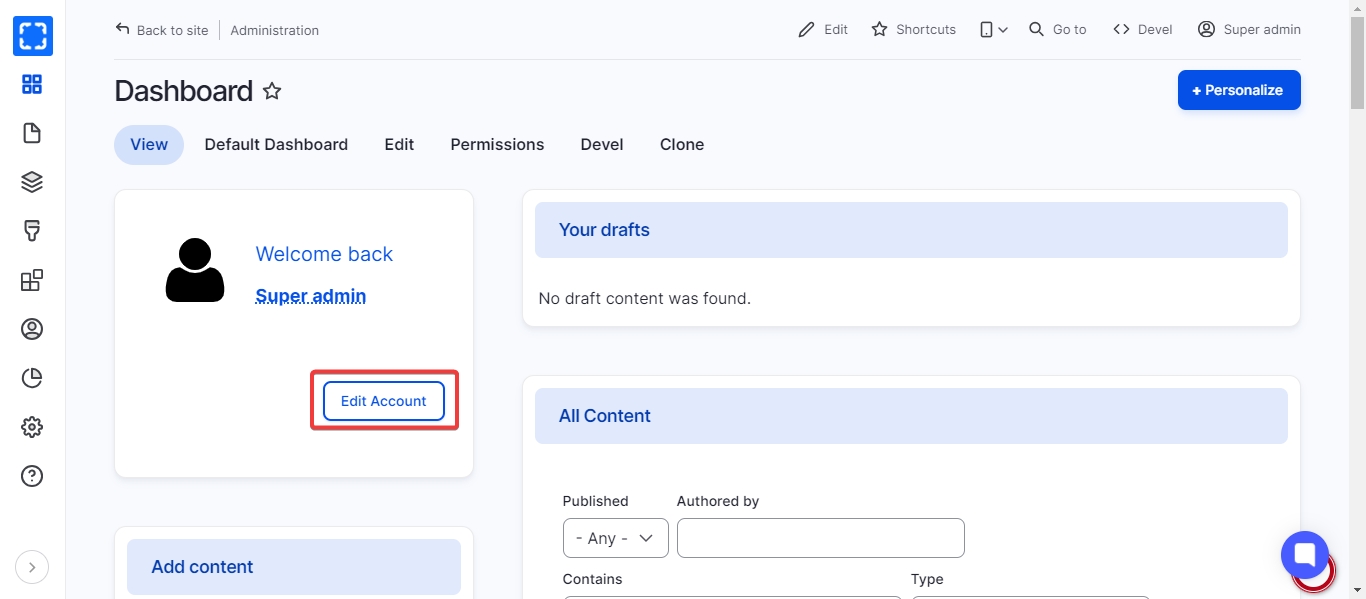 Edit Current User Account from Dashboard