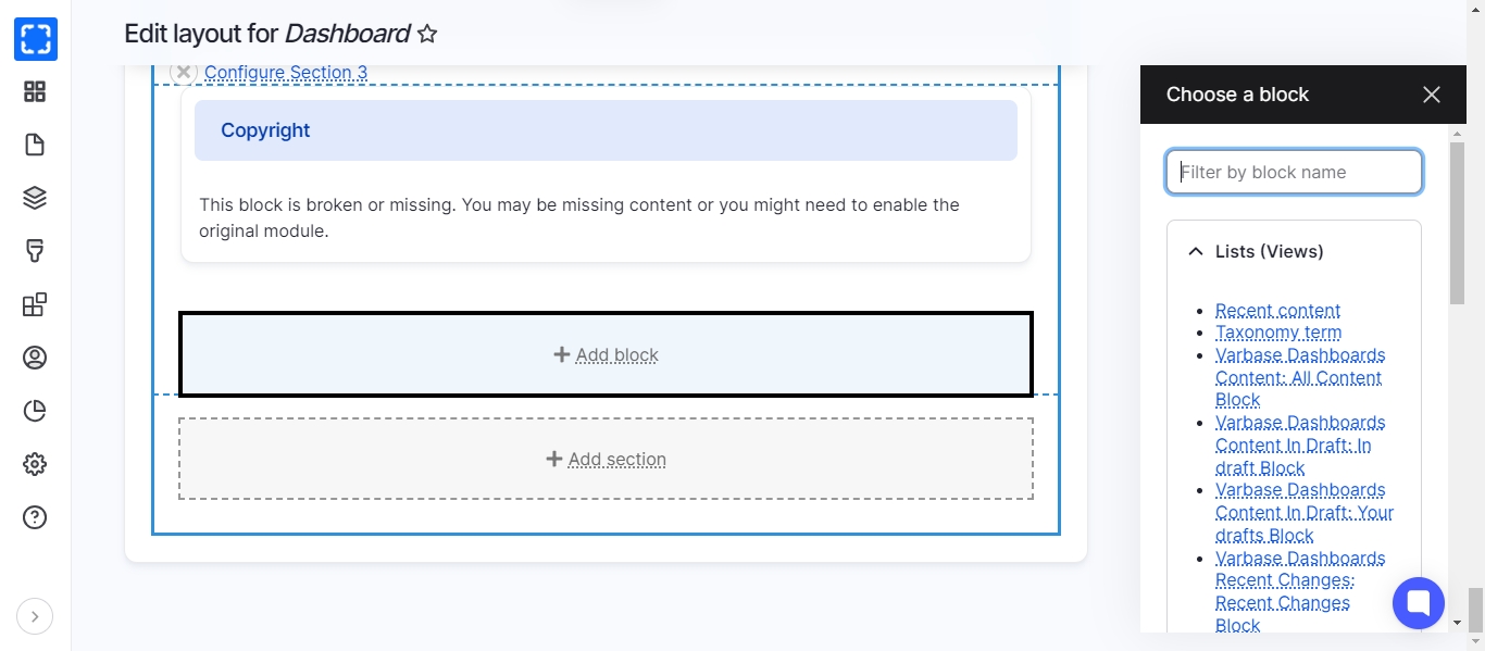 Reorder the default blocks under the dashboard.