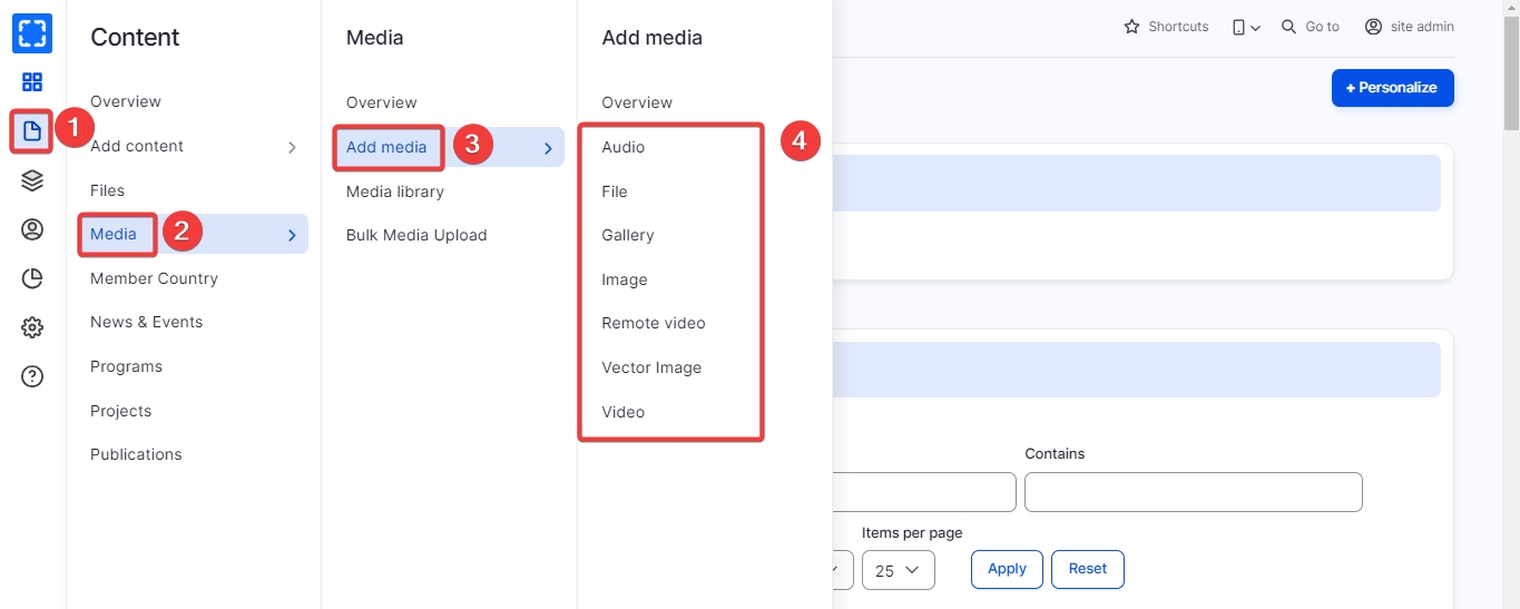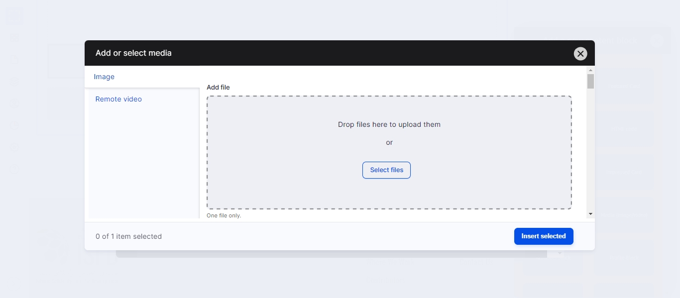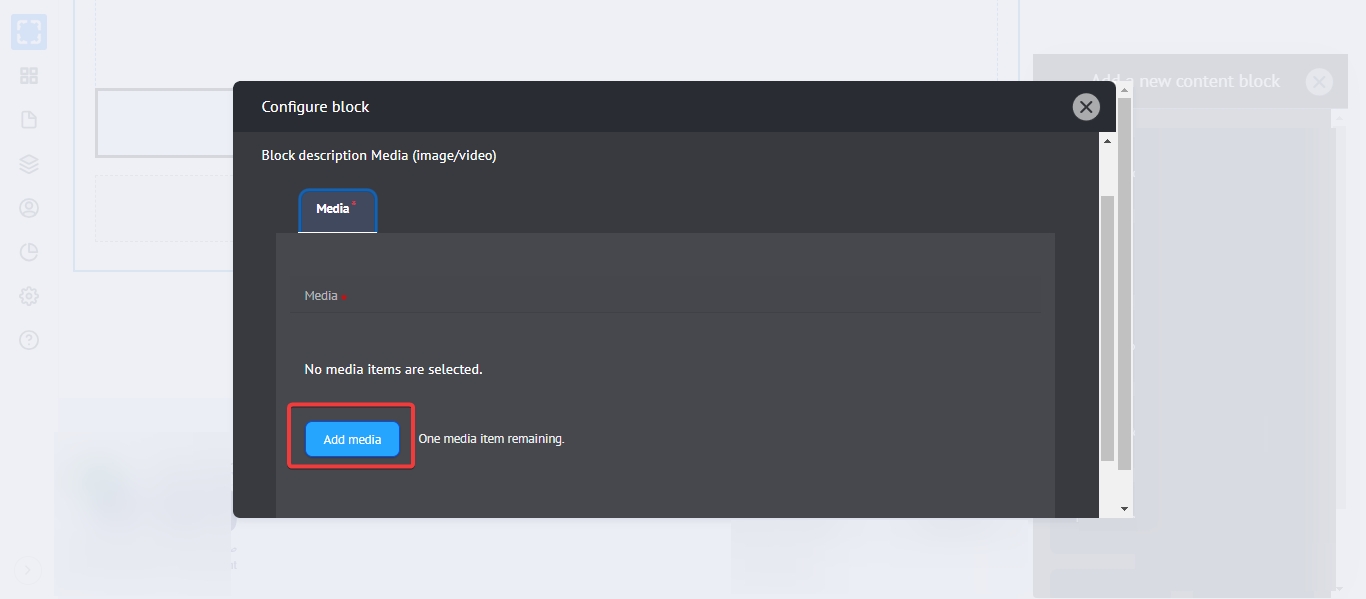 You can upload media directly from the blocks that require adding media in the layout builder: