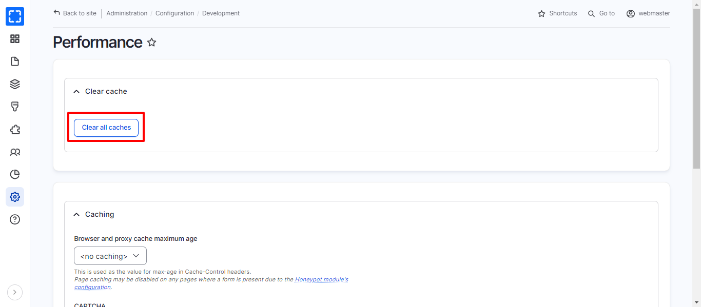 <figure><img src="https://content.gitbook.com/content/0NVNo0YmQjrLSa4Sn1ic/blobs/EP0LPHyA2G5d8mnjTdmb/image.png" alt=""><figcaption><p>Clear All Caches From Performance Page</p></figcaption></figure>