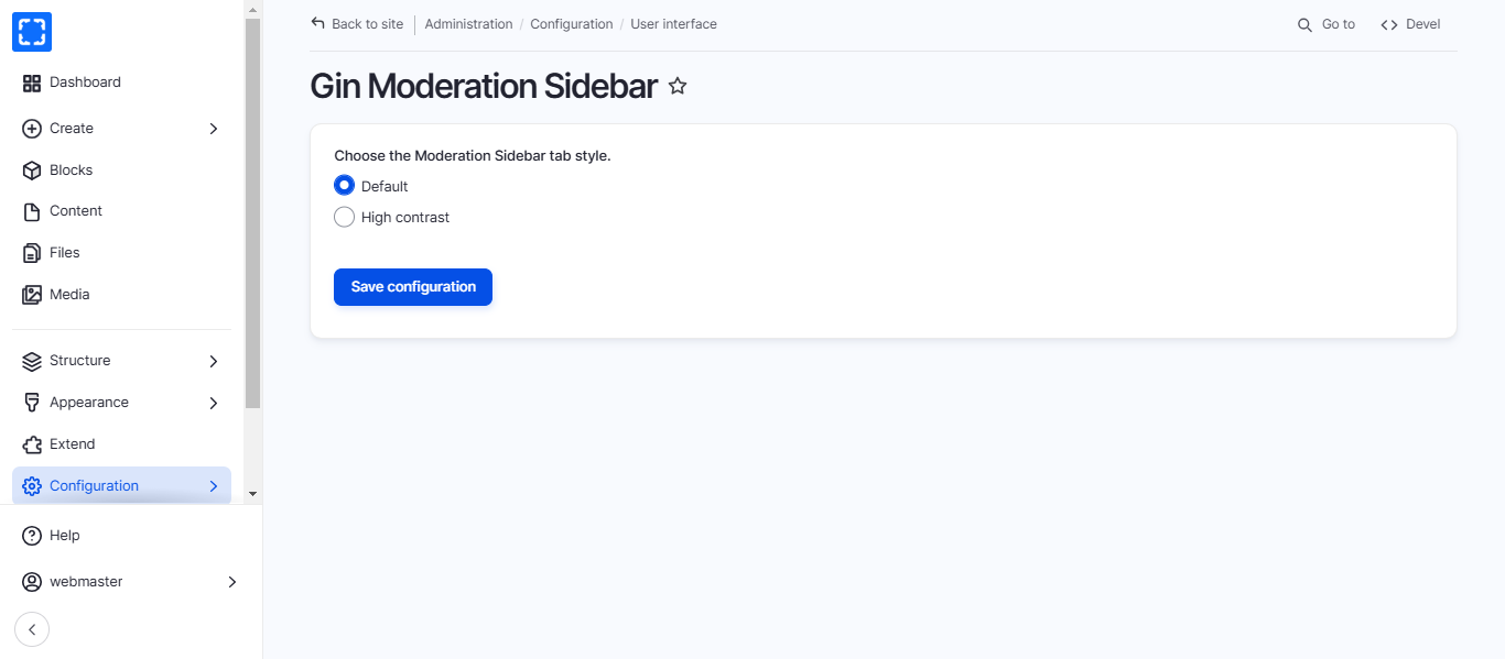 Form Configuration/ User interface/ Gin Moderation Sidebar.
