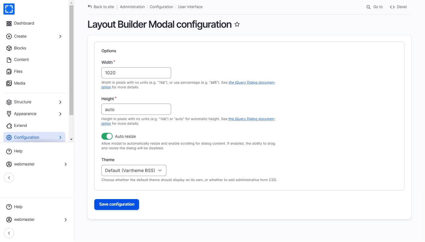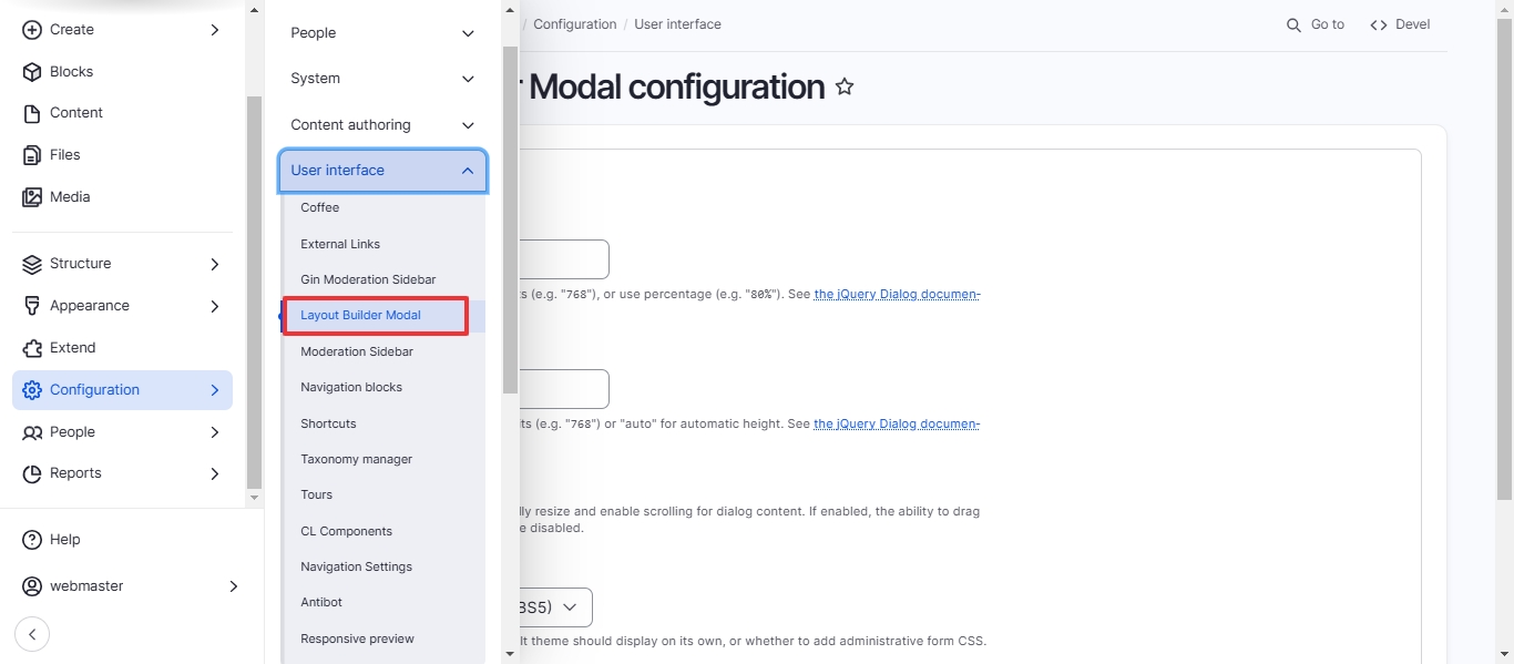The Layout Builder Modal in Varbase provides an improved user experience for managing content layouts using the Drupal Layout Builder. It allows users to configure sections and blocks within a modal window instead of a full-page reload.