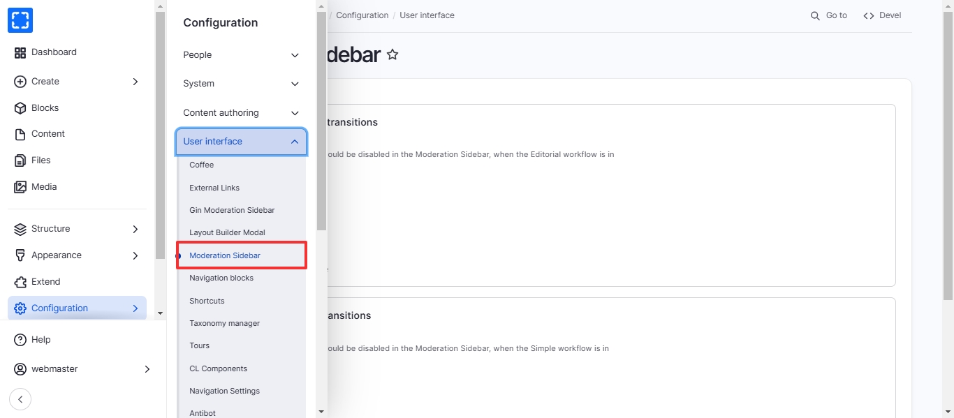 The Moderation Sidebar in Varbase enhances content workflow by allowing users to change moderation states directly from a sidebar. It integrates with Drupal’s Content Moderation system for efficient editorial management.