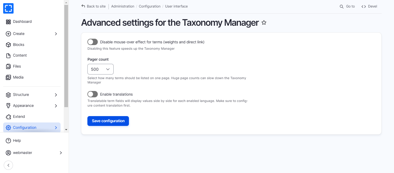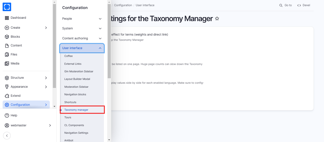 1. Form **Configuration/ User interface/&#x20;*****Taxonomy Manager.***