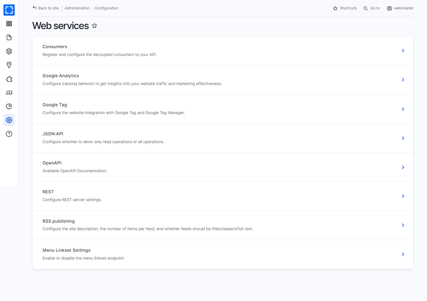 | **JSON:API**              | Configure whether to allow only read operations or all operations.                                                  |