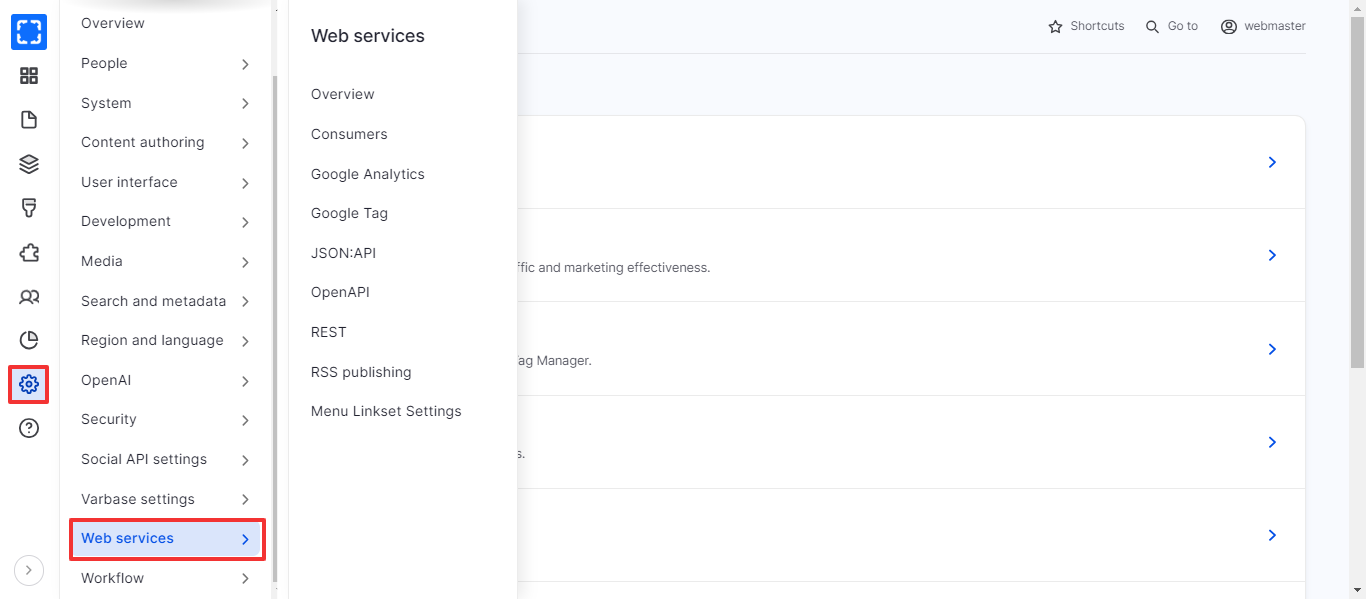 | **Google Tag**            | Configure the website integration with Google Tag and Google Tag Manager.                                           |