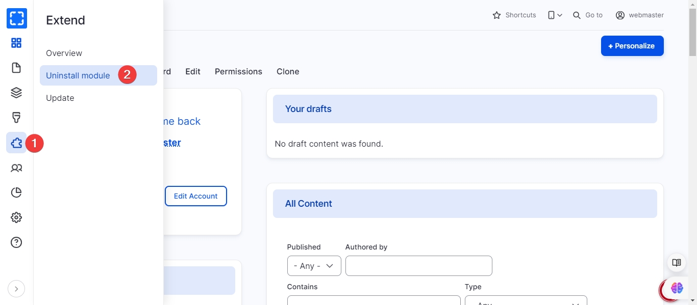 Navigate to Extend \ Uninstall module