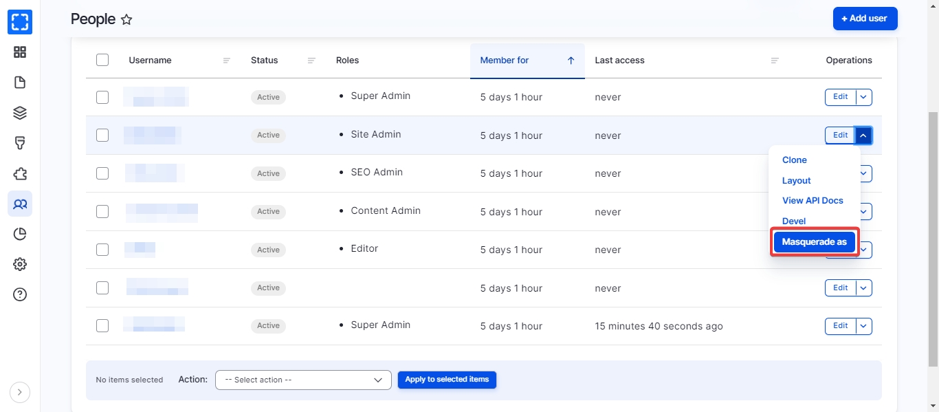 Masquerading users is one of the very helpful and useful features that allows top-level users to view the site as a lower-level user in terms of permissions and functionality.