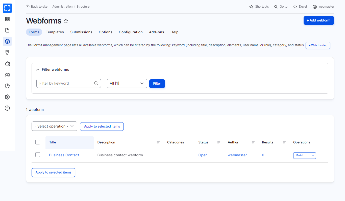1. Navigate to **Manage \ Structure \&#x20;*****Webforms*****.**