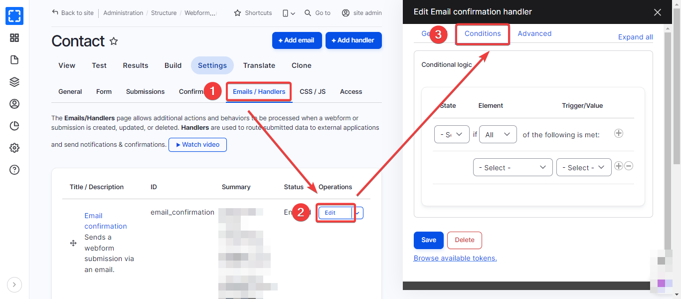 This section will explain how to trigger the confirmation using the conditions on each email handler.