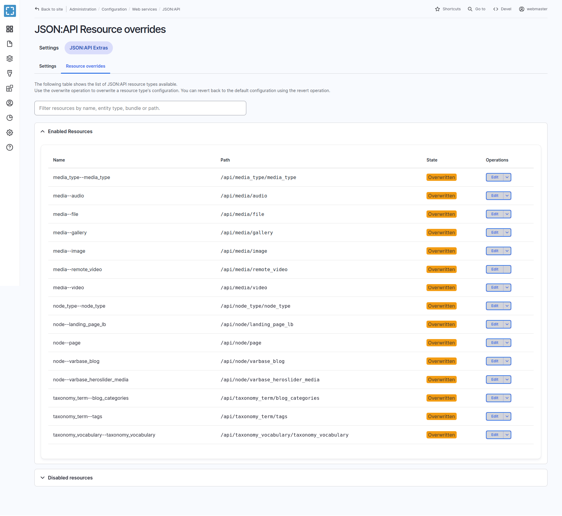 &#x20;On top of **JSON:API** settings and configs. Varbase brings more configs for easier accessibility. Extra JSON:API specifications and better API documentation for developers.