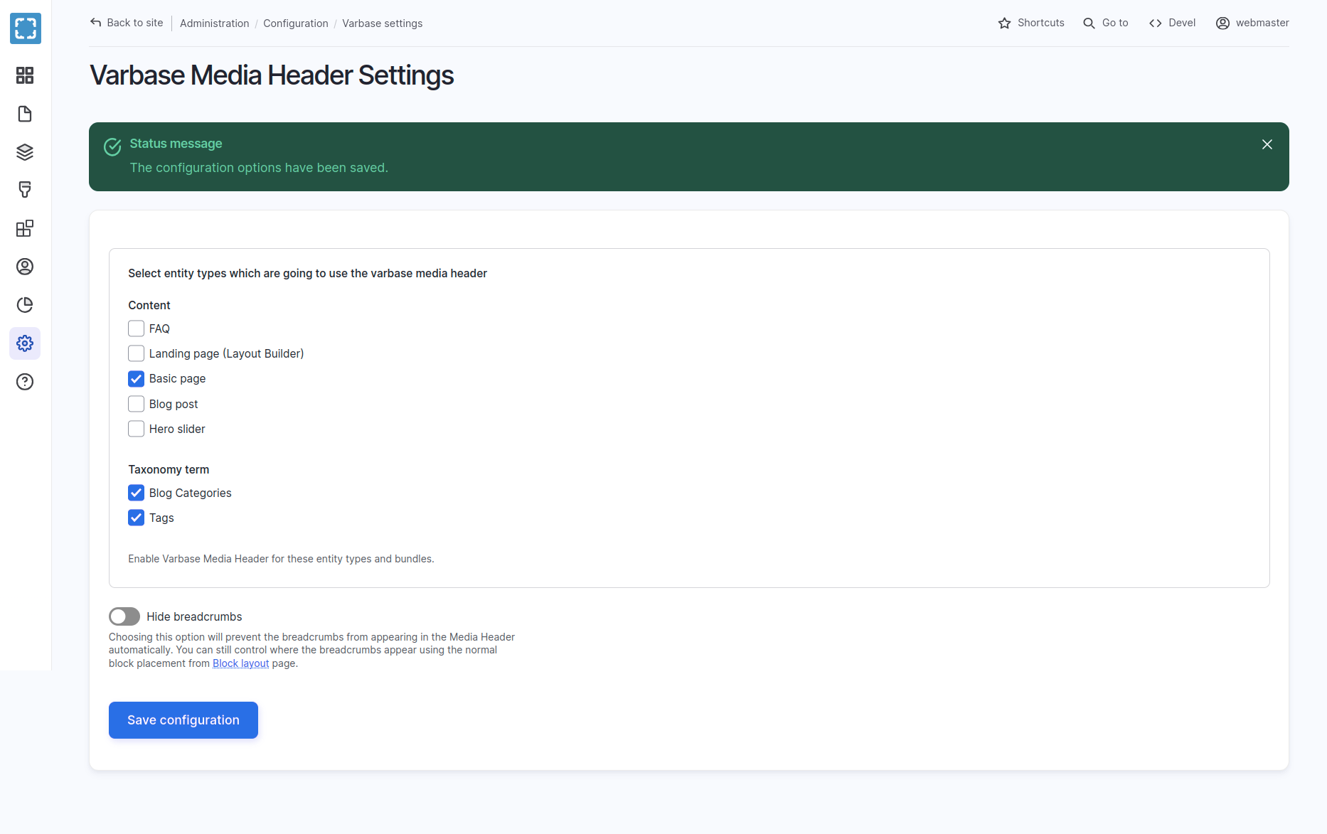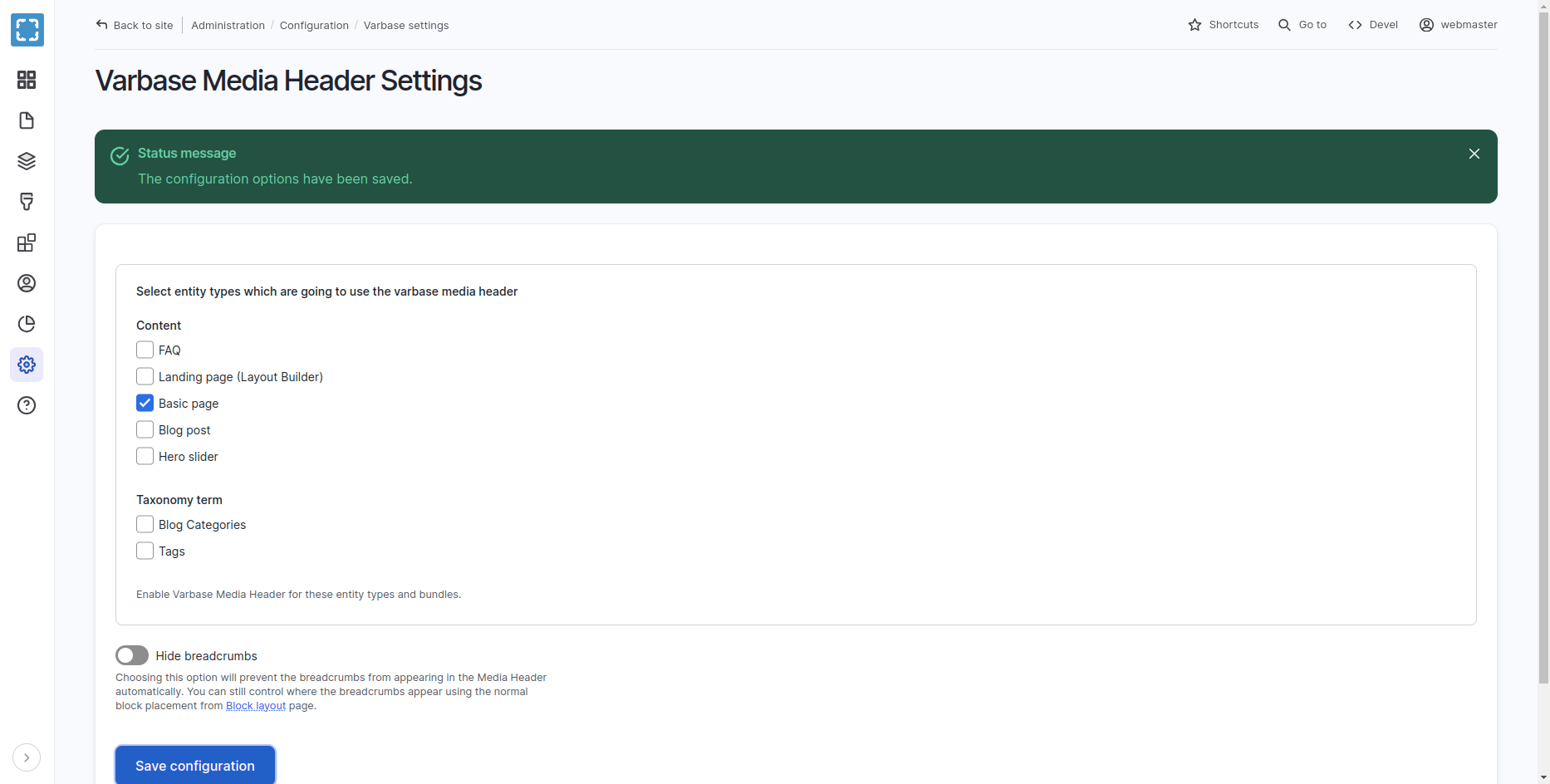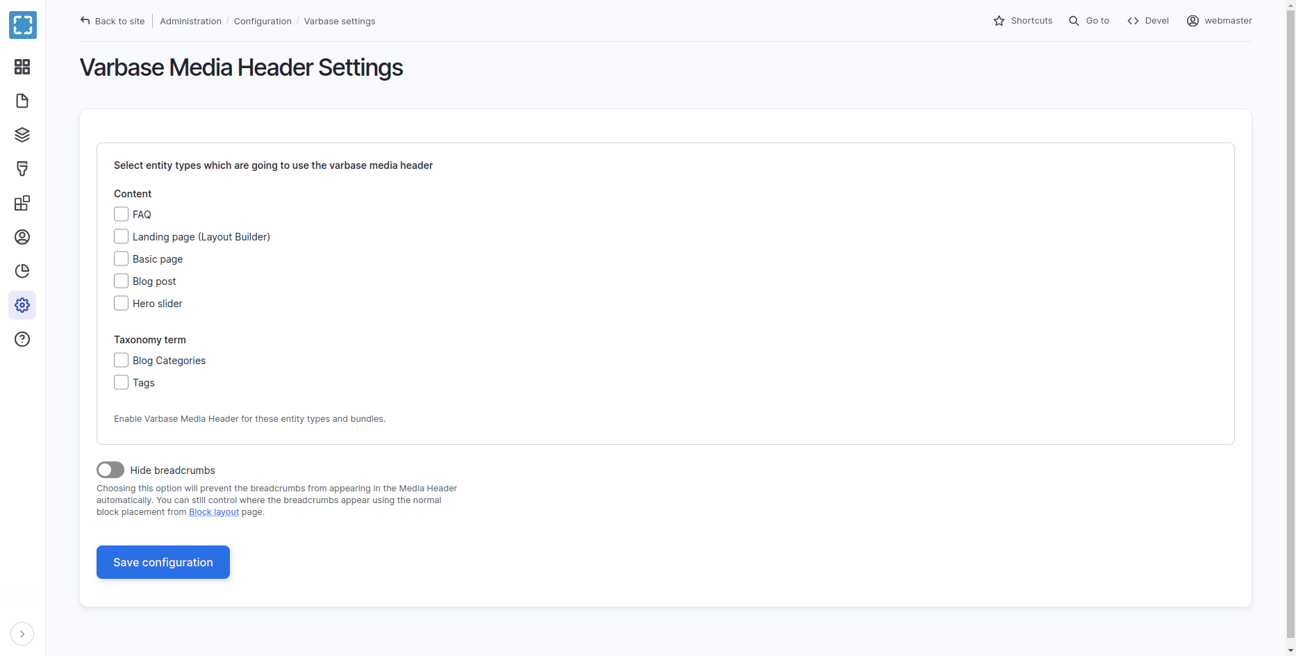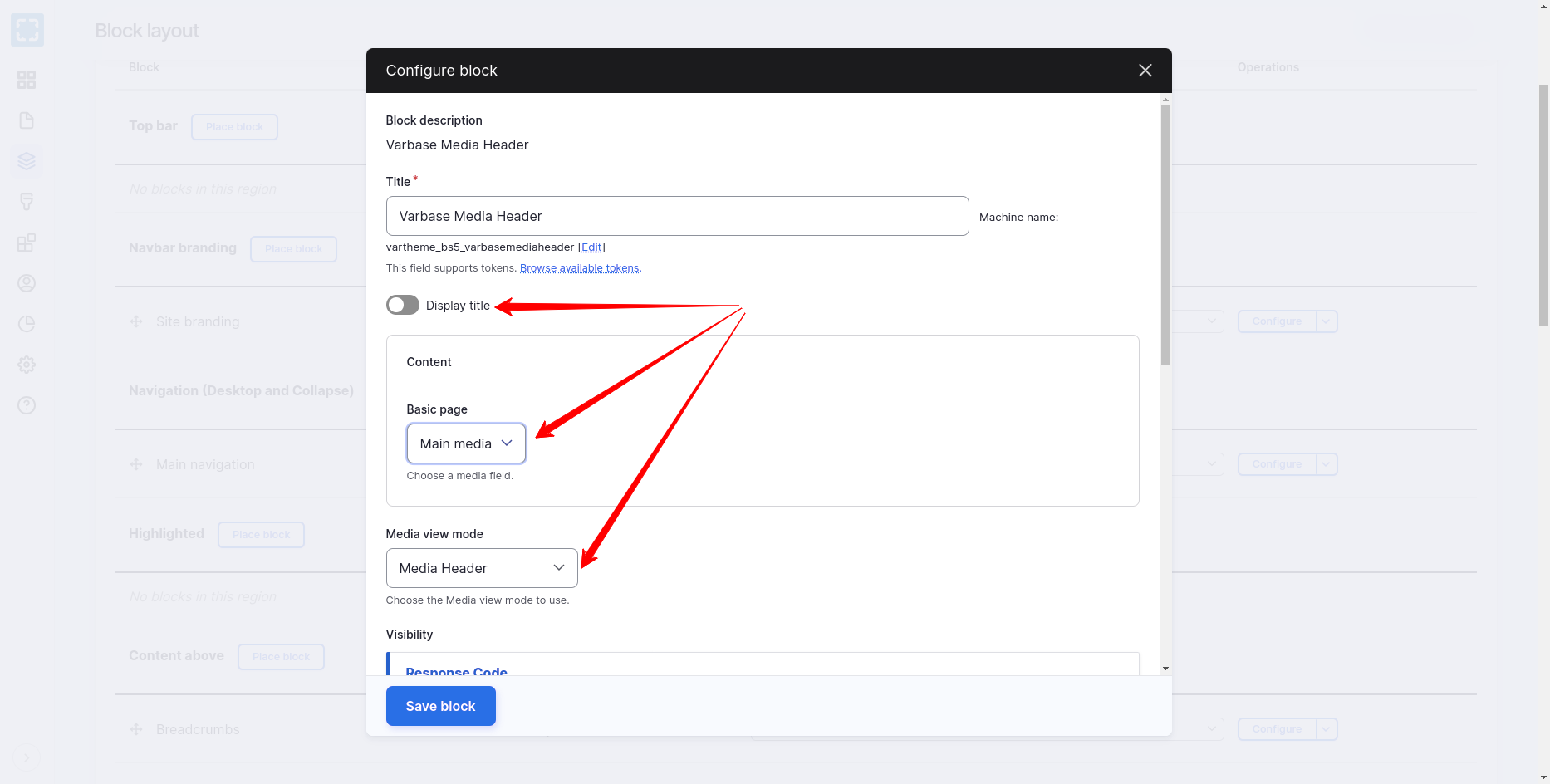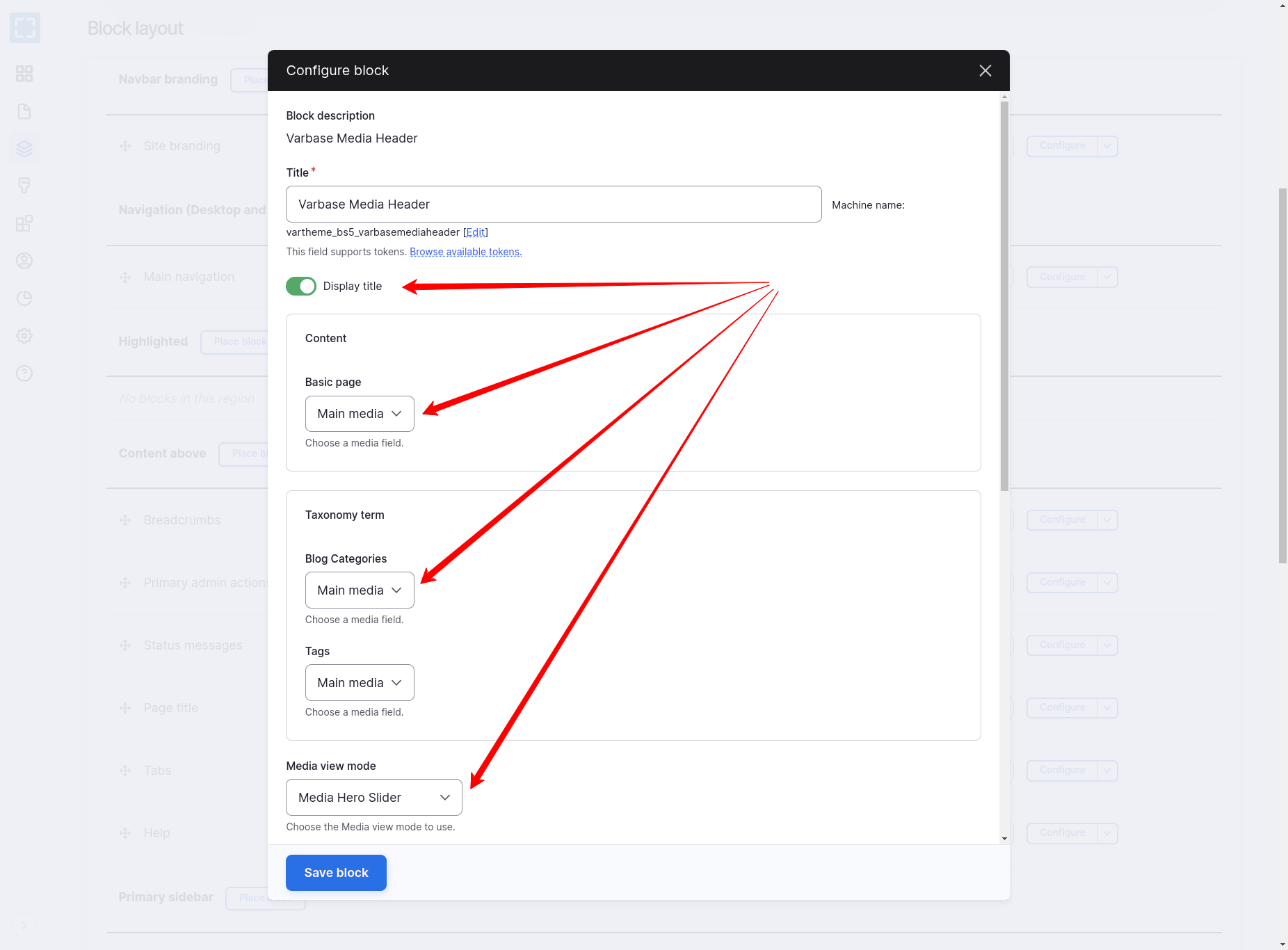 Varbase Media Header - Place Block - Configurations