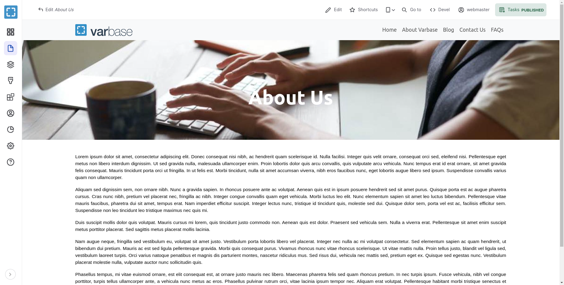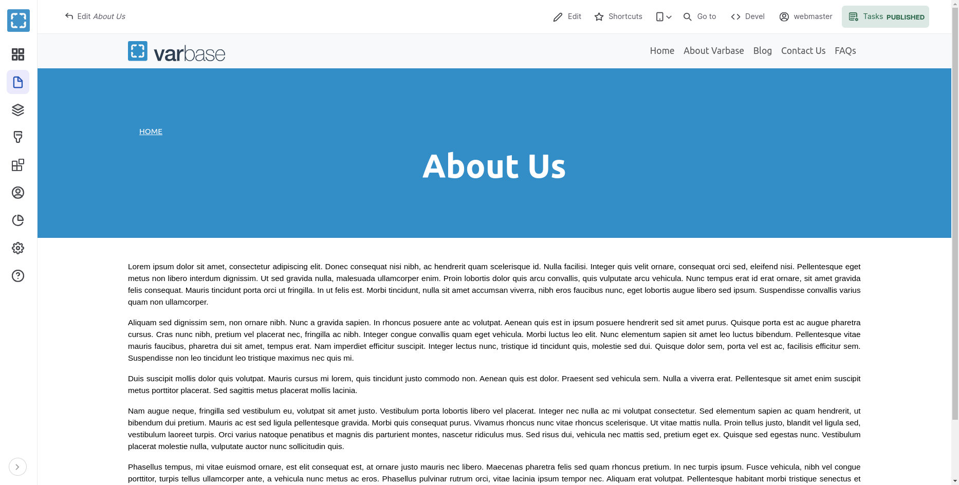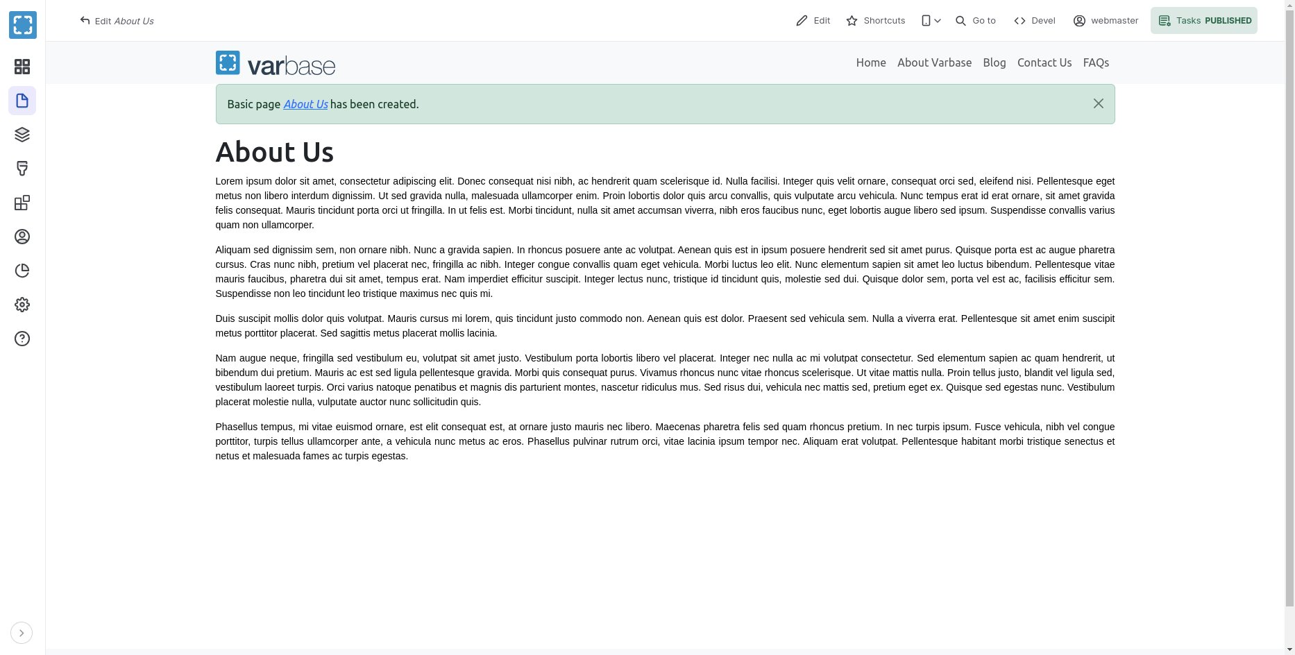 Filled Data in the Create Basic Page Form with Varbase Media Header