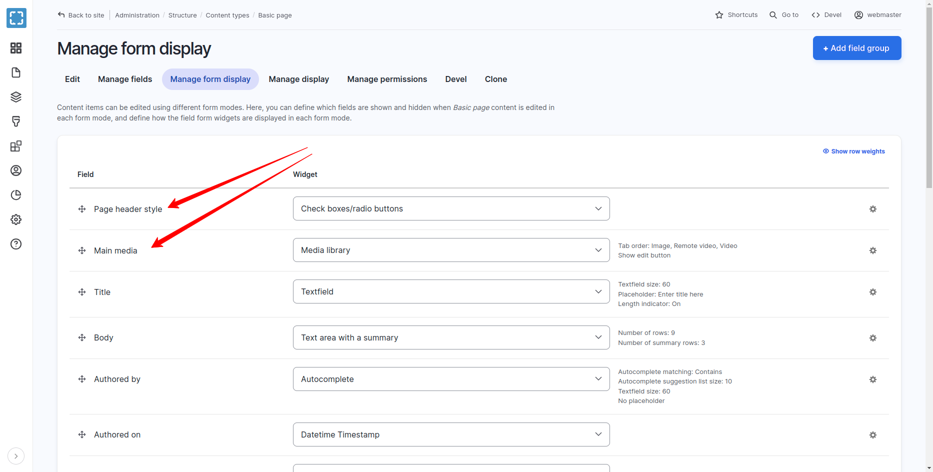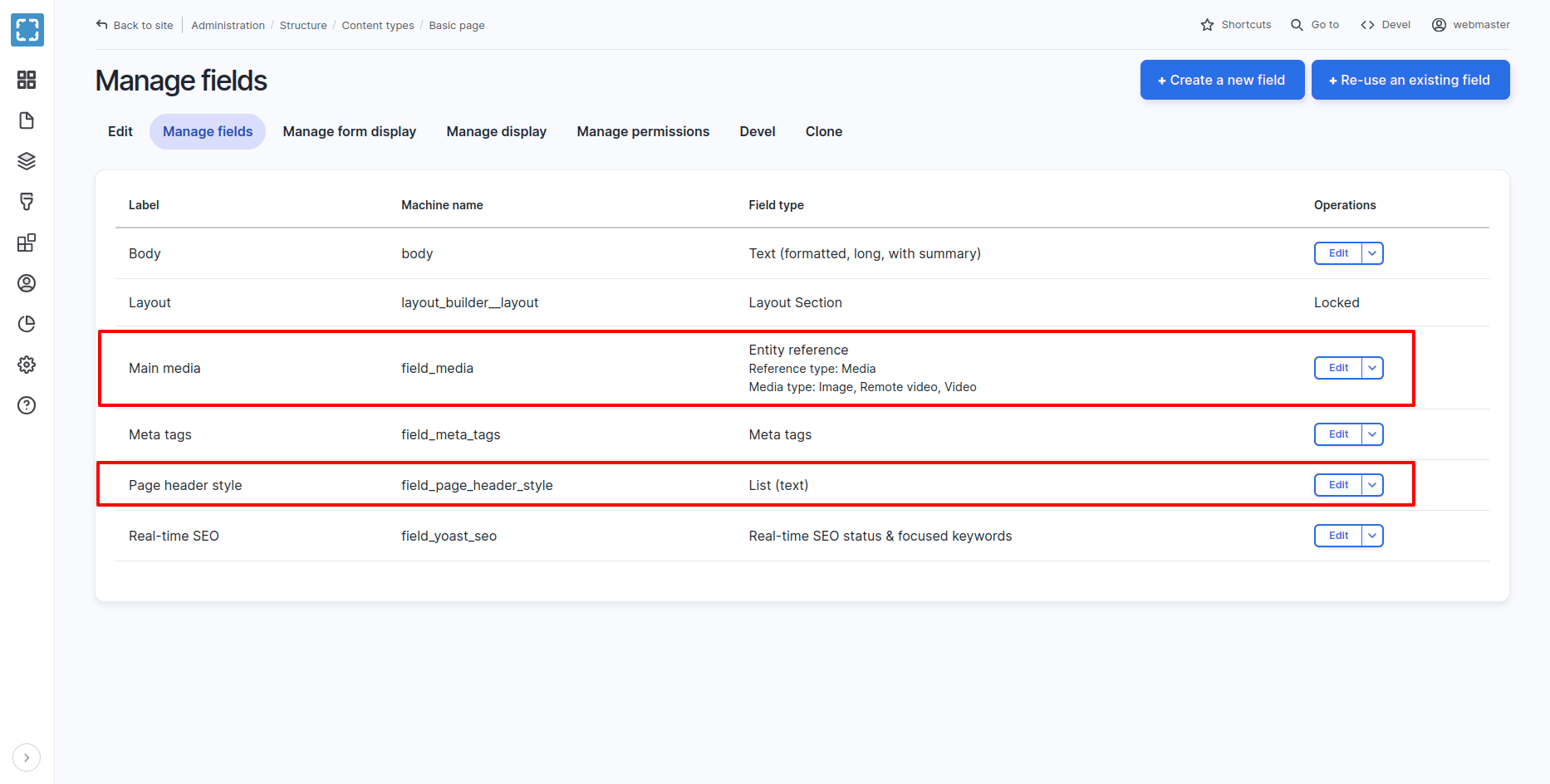 Manage Fields For Basic Page Content Type