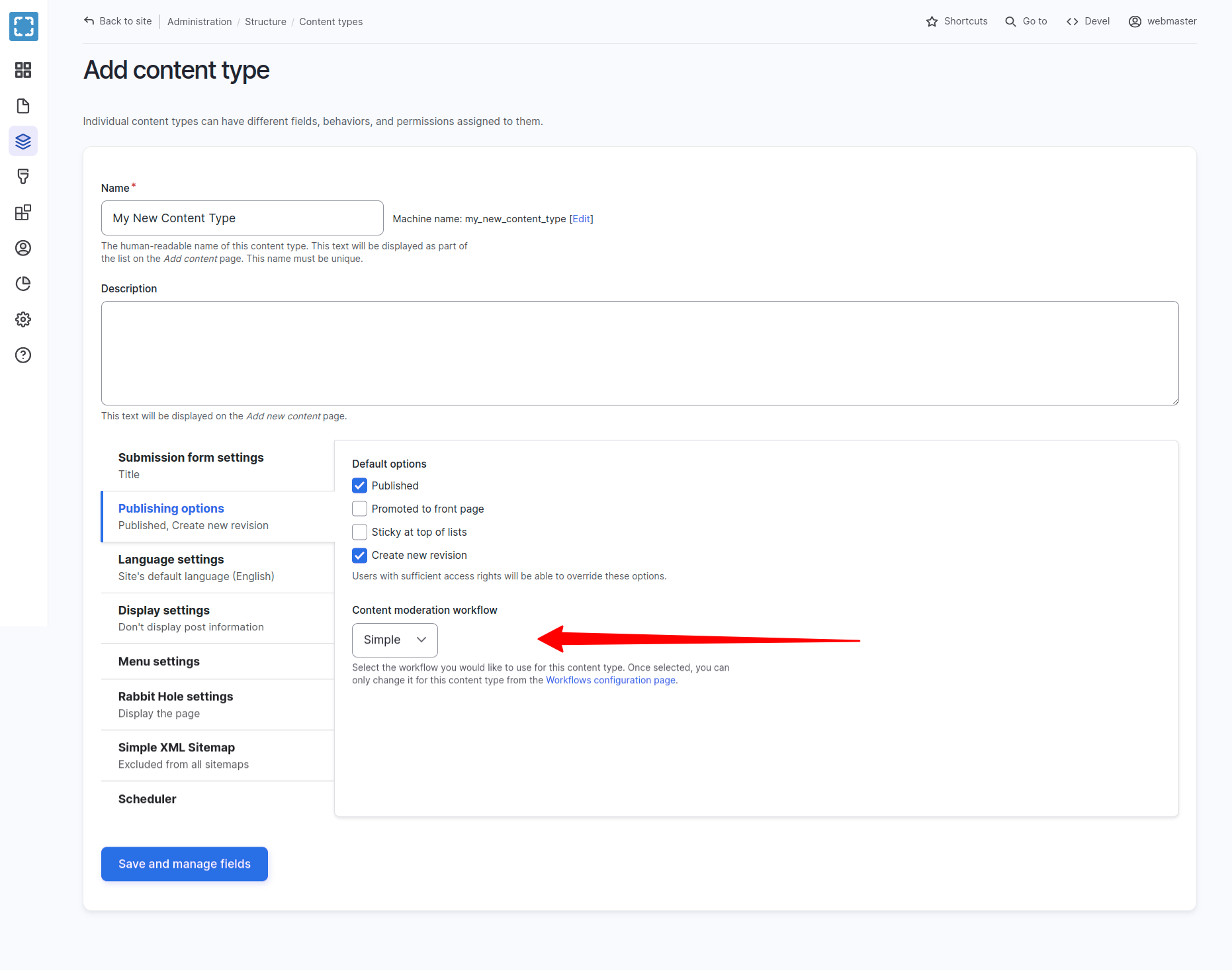 Assign a Workflow When Creating a New Content Type
