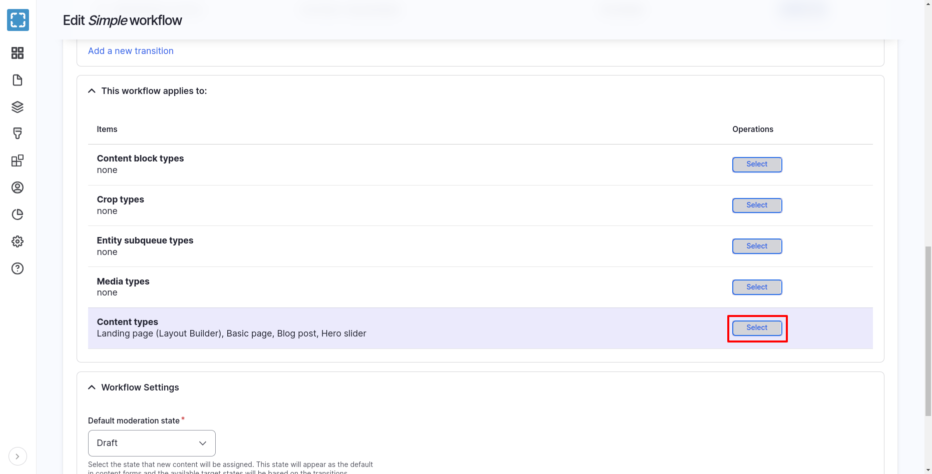 Assigning a Workflow to Content Types