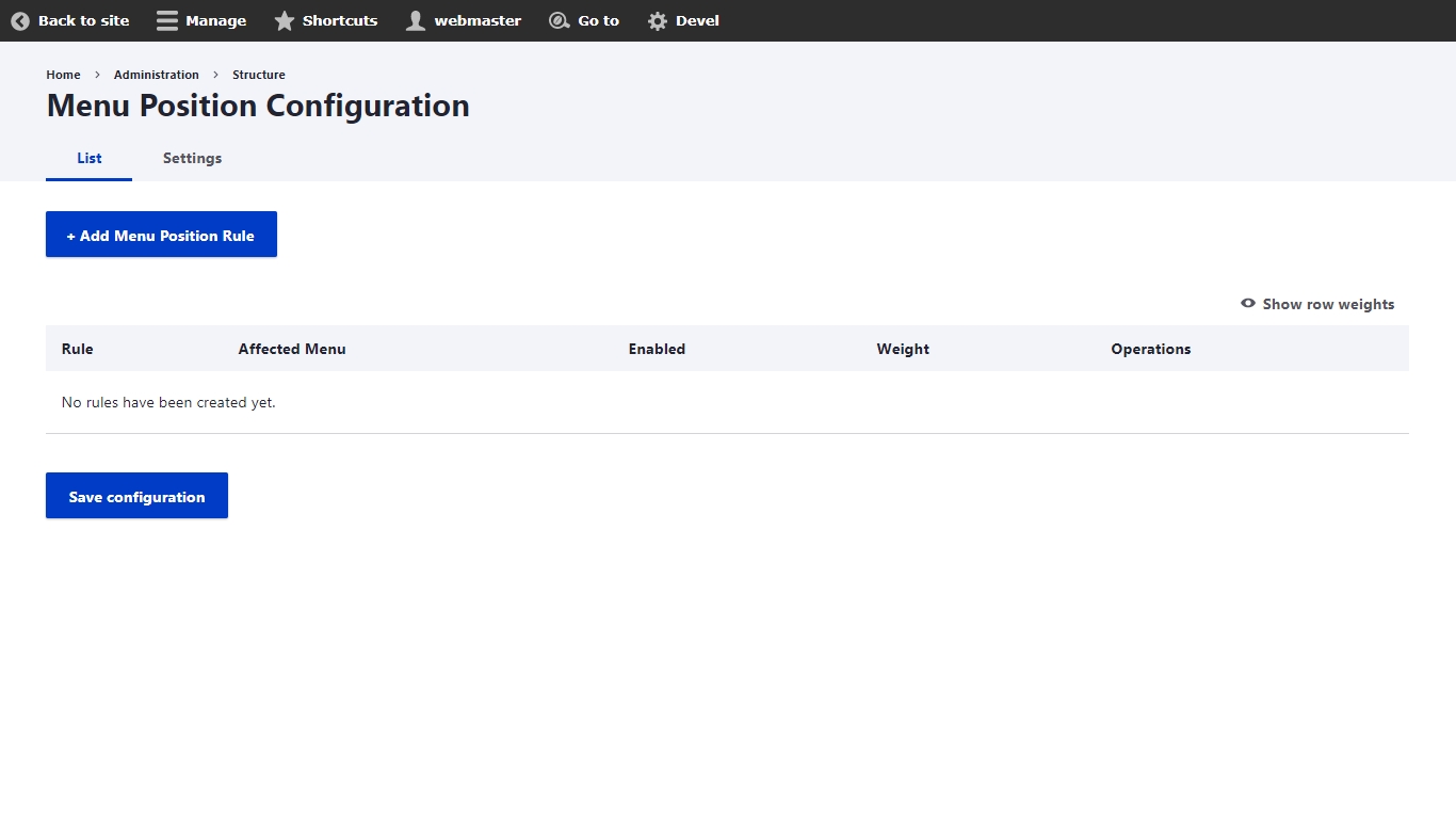 As you have noticed there are no rules yet, please follow the instruction on how to add a Menu Position Rule: