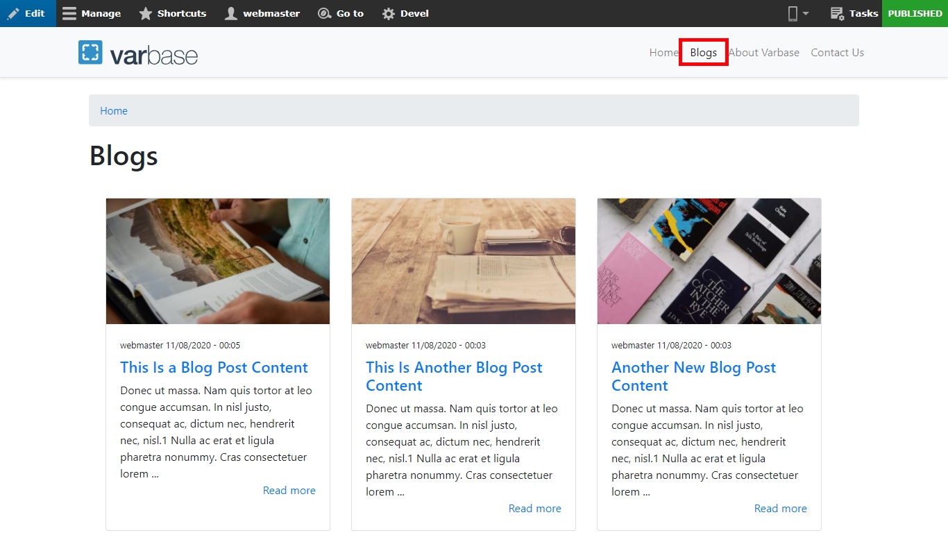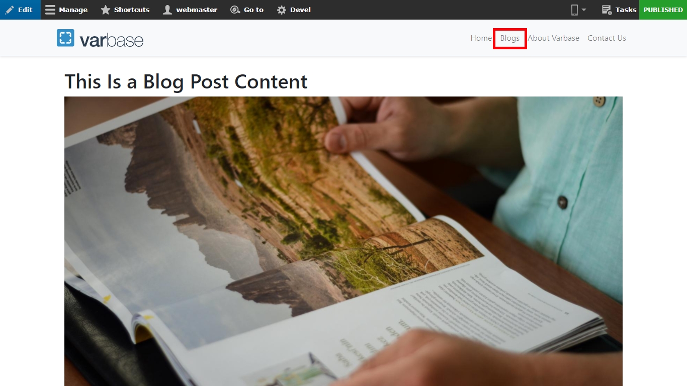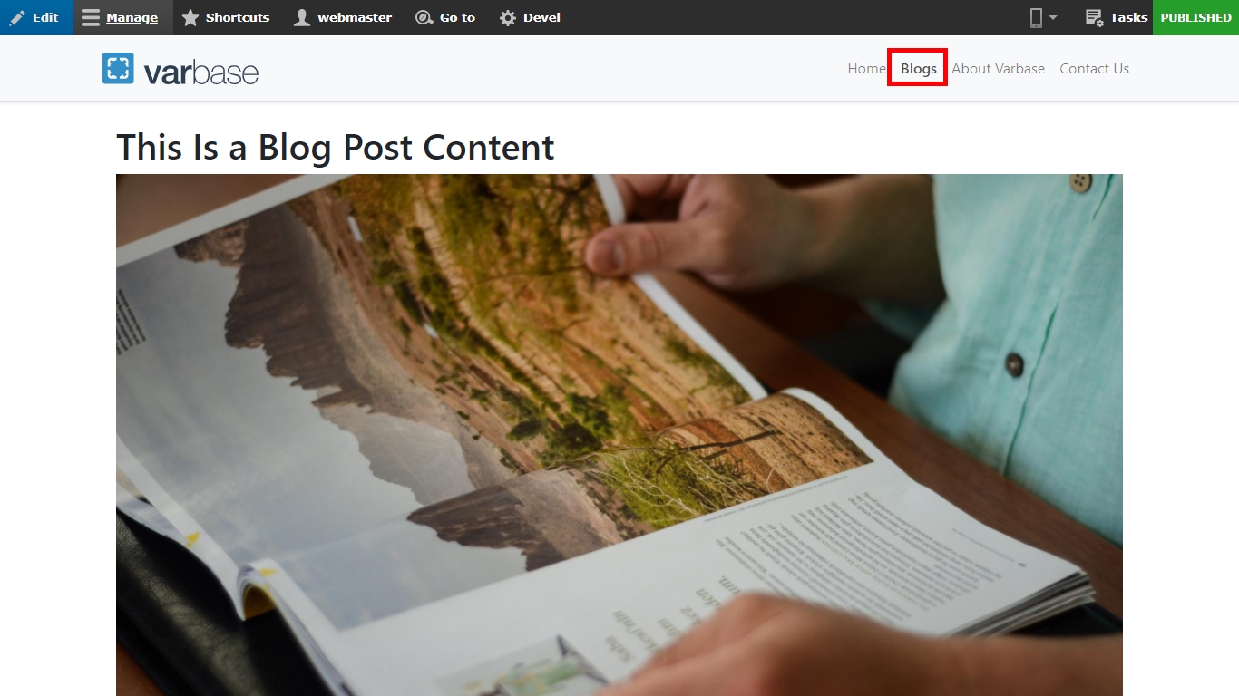 Now if you go back to the blog post content, you will notice the "Blogs" menu item is active.