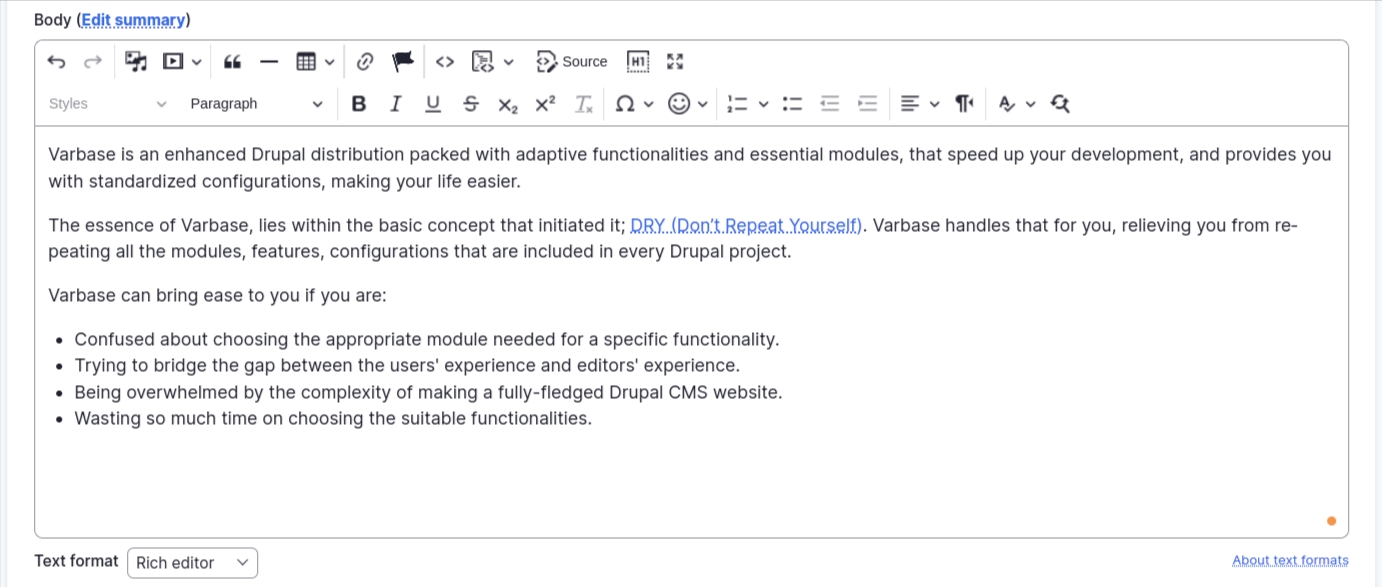 Full media integration with CKEditor including captions and much more like the CKEditor paste filter which provides extra filtering for text pasted from word.