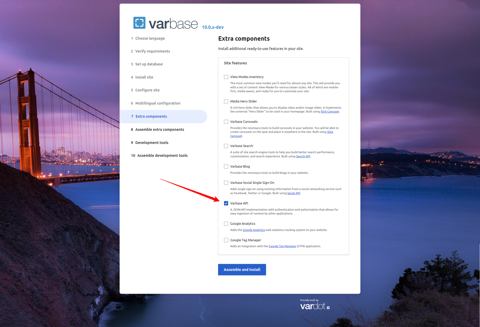 <figure><img src="https://content.gitbook.com/content/0NVNo0YmQjrLSa4Sn1ic/blobs/LyzWymxxBxXAFNV6x9I4/varbase10--Extra-components-Varbase_api.png" alt=""><figcaption><p>Varbase API in the List of Varbase Extra Components Installation Step</p></figcaption></figure>