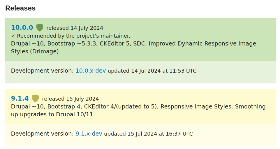 **Varbase \~9.1.0** uses **Drupal 10**, **Bootstrap 4**, **CKEditor 4/5**, **Default Drupal Responsive Image Styles**. Smoothing up upgrades to **Drupal 10/11**